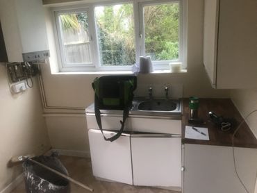 A mould patch had built up behind the kitchen cupboards, so cleaned and scraped that off; whilst the new cupboard would of covered it, its just not the MPC way to leave something like that.
